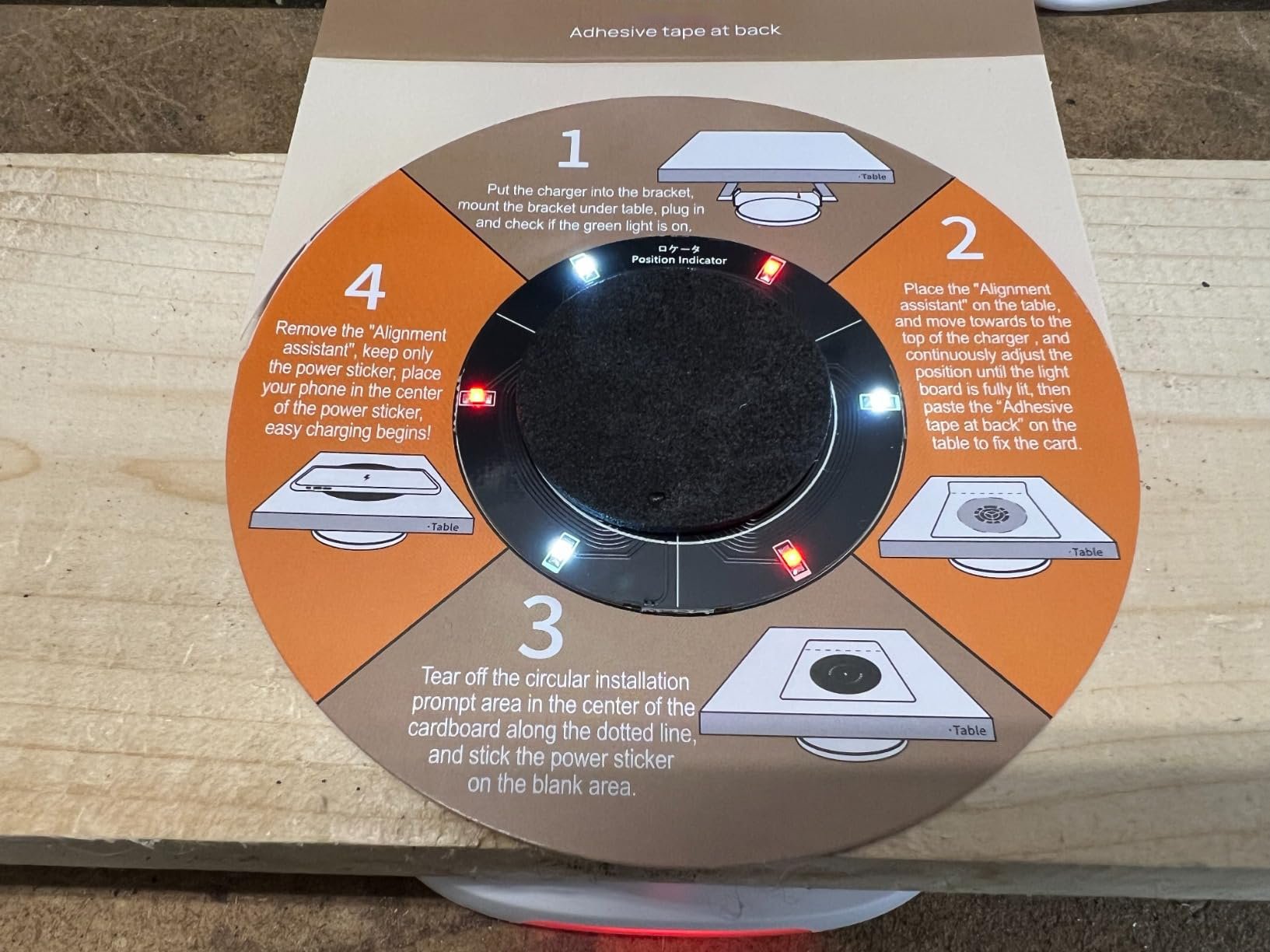 Apply Surface Sticker: Place the thin alignment sticker on the top of the desk directly above the charger.