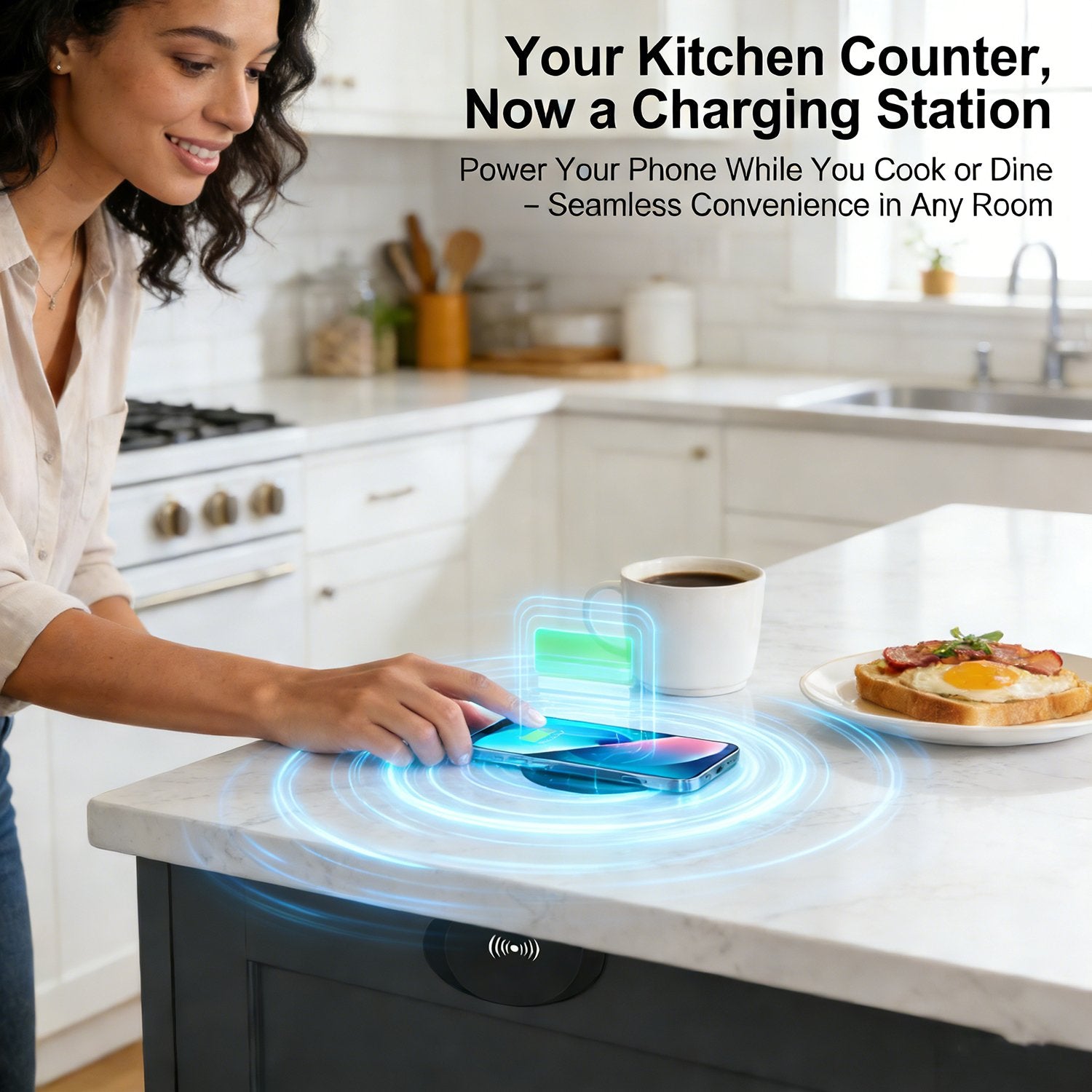 Imagine a workspace where your phone powers up the moment you set it down—no cords, no clutter, just clean, effortless charging. This isn't just another charging pad; it's a seamless upgrade that installs under your desk, turning wood, glass, or granite into a powerful, invisible charging zone. Welcome to the next level of a tidy, wire-free desk.